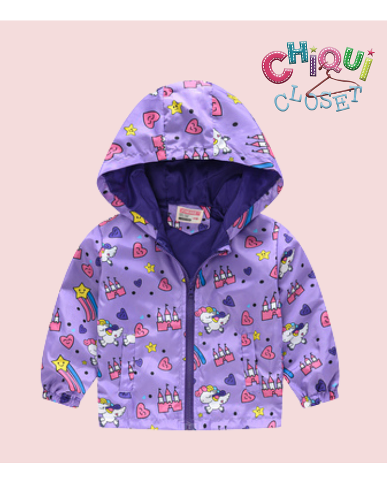 Nueva chaqueta con capota diseño de rompevientos forrada con estampado de castillos, estrellas y corazones.