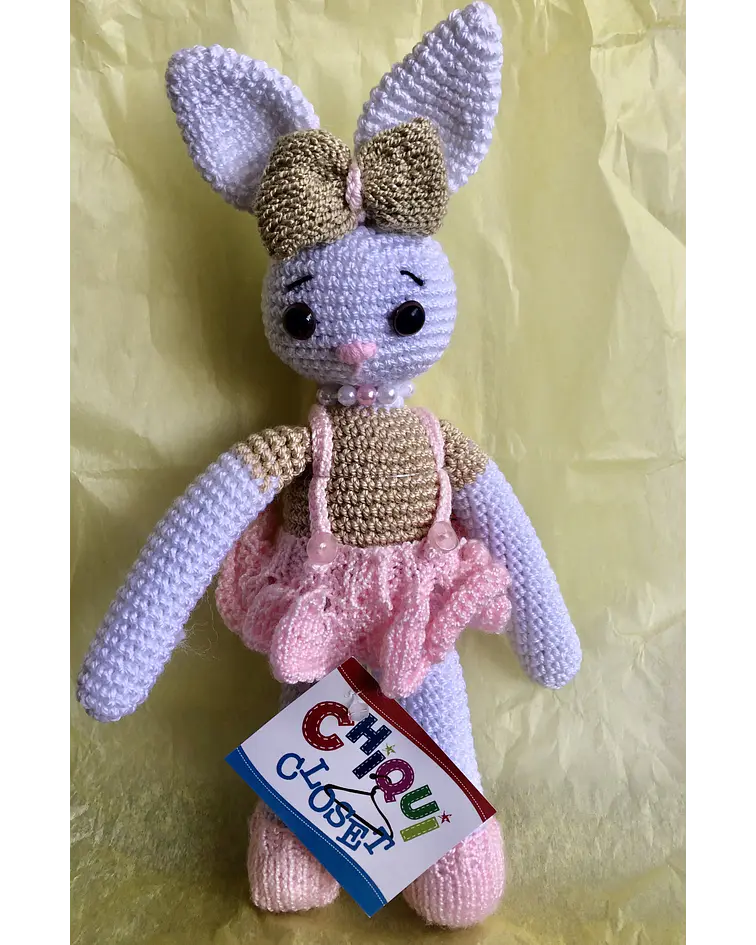 Amigurumi Coneja con collar de perlas. Hecho en Algodón hipoalergénico especial para recién nacido, tejido 100% a mano