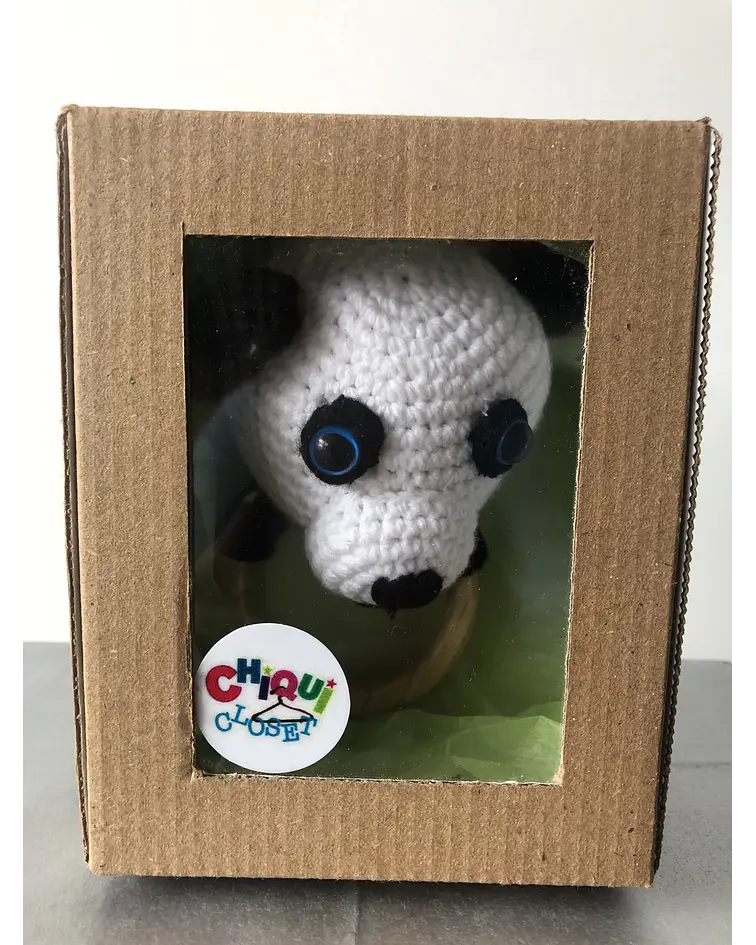 Amigurumi de Oso Panda con soporte de aro de madera. Hecho en Algodón hipoalergénico especial para recién nacido, tejido 100% a mano.