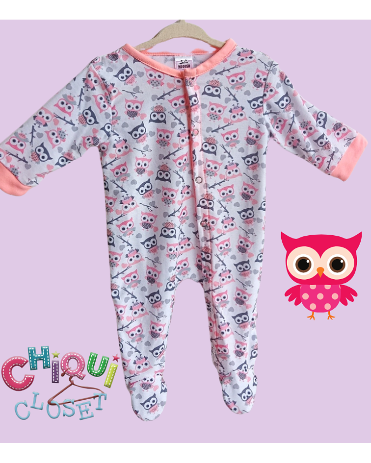 Linda, cómoda y divertida pijama enteriza con estampado de búhos.