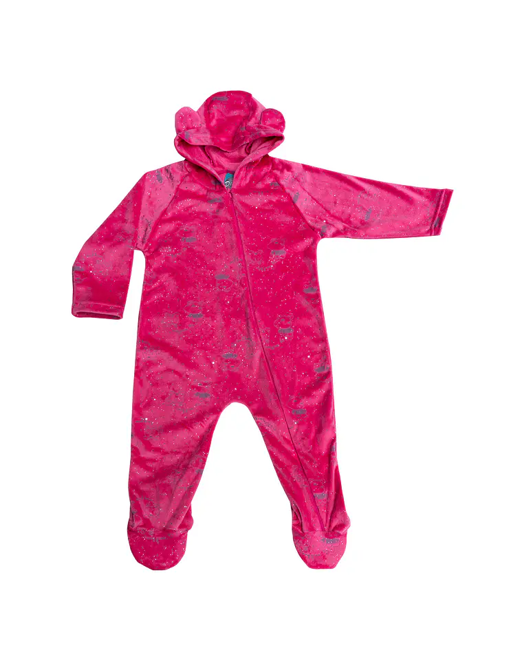 Linda Pijama térmica en tela escarchada, con capota de orejitas.