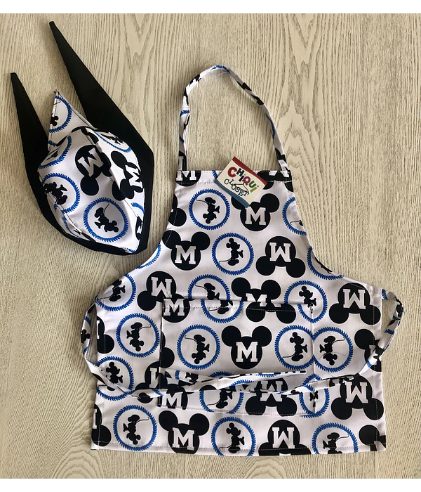 Lindo set de delantal y gorro chef en tela estampada anti fluidos.