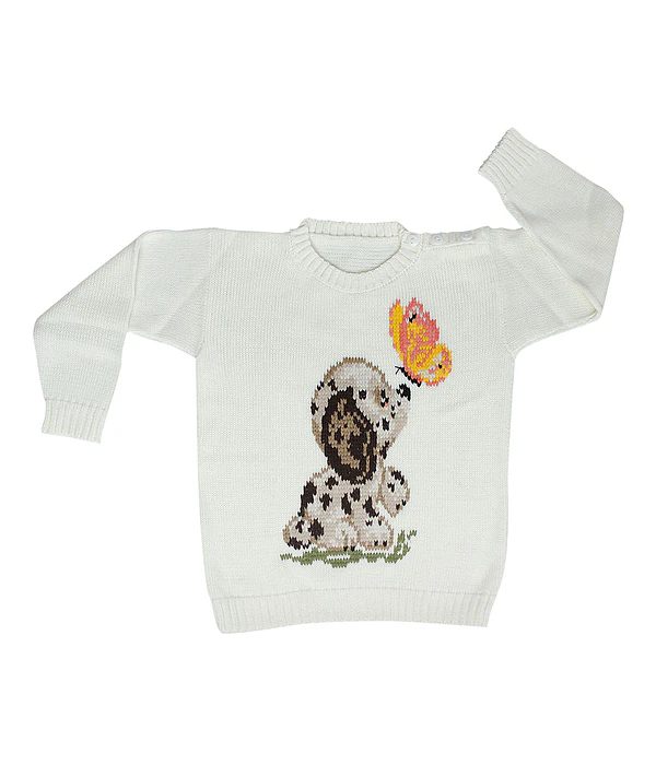 Sweater cuello redondo con botones funcionales en el hombro izquierdo. Gatito tejido a mano. Material: Lana.